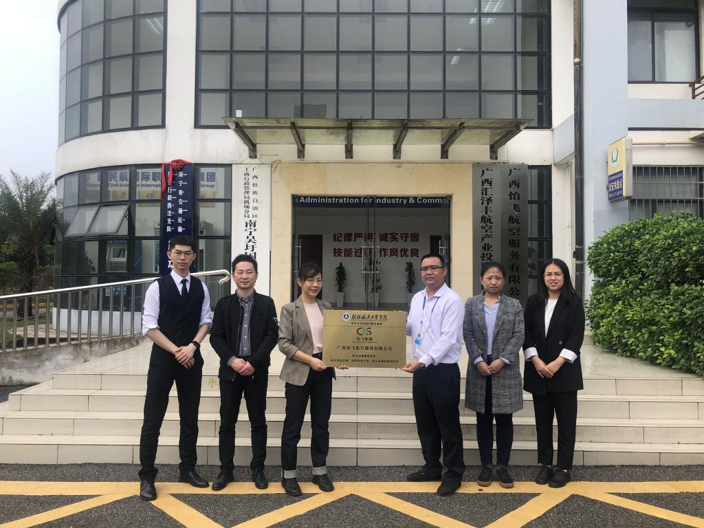 4月20日,航空旅游公司与广西怡飞航空服务有限公司共建“员工实习实训与就业基地”签约授牌仪式,在位于广西空港区南宁吴圩国际机场顺利举行。出席签约仪式的有公司党总支副书记李雨思及部分辅导员代表,广西怡飞航空服务有限公司经理花延恩等企业代表。