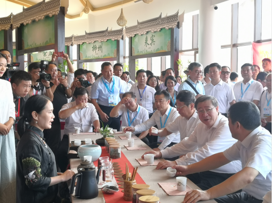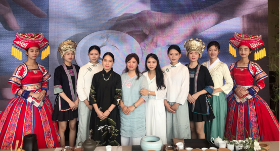启动仪式上,身着民族服装的员工志愿者,满怀的丰收喜悦笑容,迎接了来自阿里巴巴集团战略发展部等四面八方的客人;引导志愿者带领客人们走进富有广西特色的重要节日;在上午举行的2020年广西(桂林)茶产业展销会上,员工们身穿汉服为嘉宾表演了茶艺,并向贵客们奉茶。