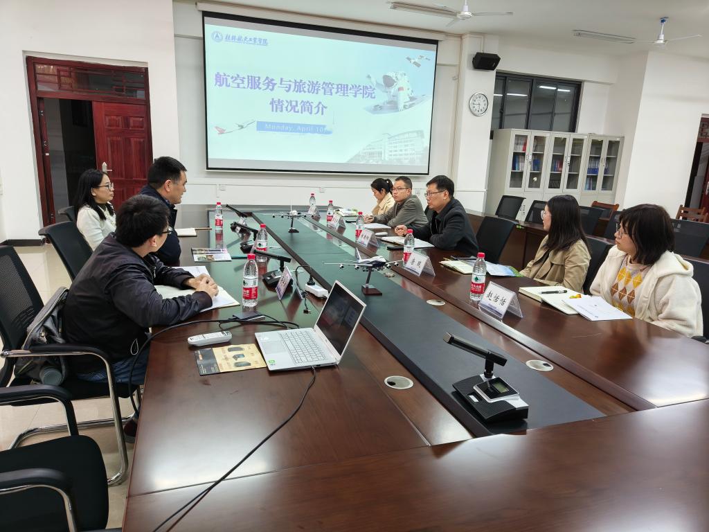 4月10日下午,广西旅发桂林投资有限公司党委委员、总经理助理孙鹏一行三人到访公司,开展校企合作交流。公司经理林朝阳、党委副书记唐珉、相关教研室主任及毕业班辅导员参加交流座谈会。
