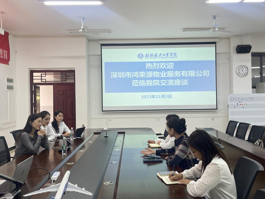 会上,唐珉副书记首先介绍了公司基本情况以及相关专业发展概况;深圳鸿荣源物业服务有限公司领导介绍了公司基本情况和近年来公司岗位招聘需求情况。随后,双方就加大合作力度,进一步深化校企合作以及在员工实习实训、就业、人才培养等方面加强交流对接进行了深度交流探讨。