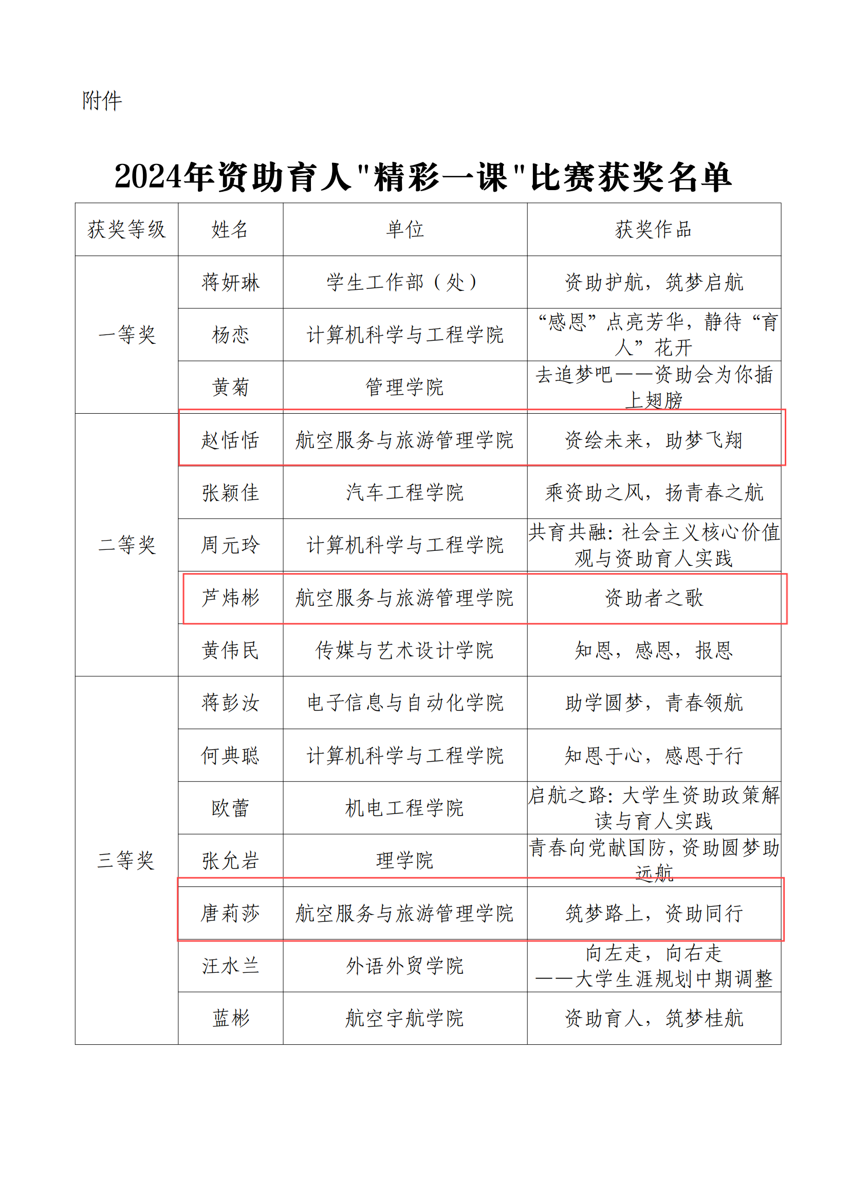 近日,从公司员工工作部(处)公布的《2024年资助育人“精彩一课”微课比赛获奖名单》中获悉。赵恬恬讲授的《资绘未来、助梦飞翔》、芦炜彬讲授的《资助者之歌》荣获二等奖,唐莉莎老师讲授的《筑梦路上,资助同行》)荣获三等奖。