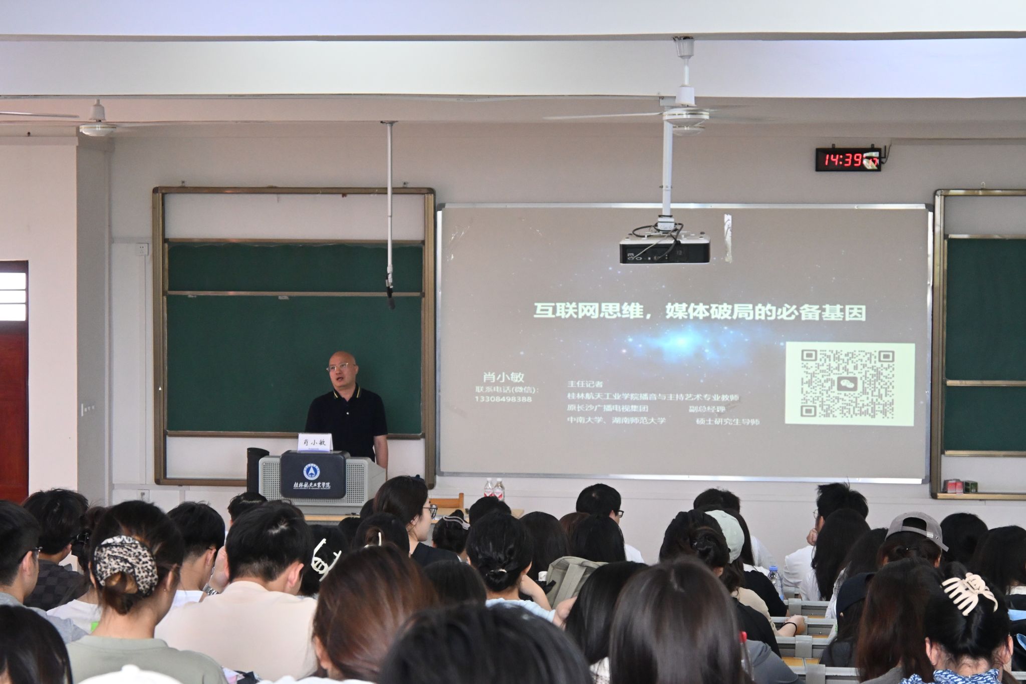 肖小敏结合自身多年从业经验,为同学们详细介绍了当下传统媒体发展变化的情况,以及互联网时代背景下,他带领长沙台破局转型,实现传统媒体新发展的工作经历。他认为,融媒体思维与传统媒体思维的唯一区别在于,是否用互联网思维和数字技术改造自己,作为融媒体时代的传播者,要学会运用互联网思维进行准确定位、聚焦自身特色,把传播做到极致。
