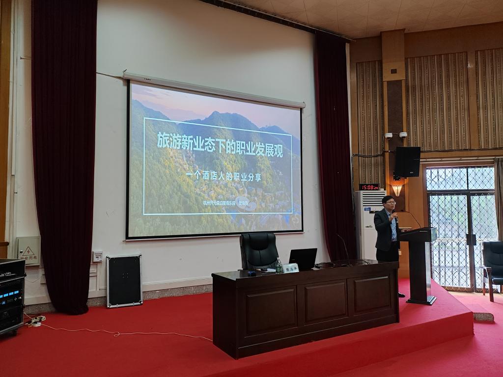 樊海贵从旅游业态的发展变化、合格酒店人的素质要求和旅游专业员工的职业规划三个方面深入浅出的开展讲座。