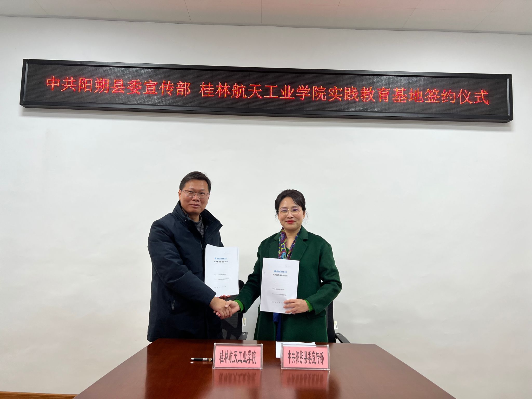林朝阳代表公司与阳朔县委宣传部签订“五合一”实践教育基地共建协议。双方将共同打造“双师型”教师队伍,共同实施教学,共同建设实践教育平台,共同实施教学考核与质量监控,将基地建设成为集教师科研基地、教师挂职基地、兼职教师来源基地、员工实习实训基地、员工就业基地为一体的“五合一”实践教育基地。