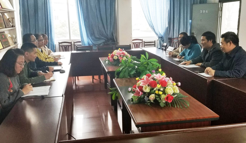 11月7日,校员工工作部(处)副部长杨华一行四人来公司开展工作调研,公司党总支副书记张海涛及全体辅导员参加了调研座谈。
