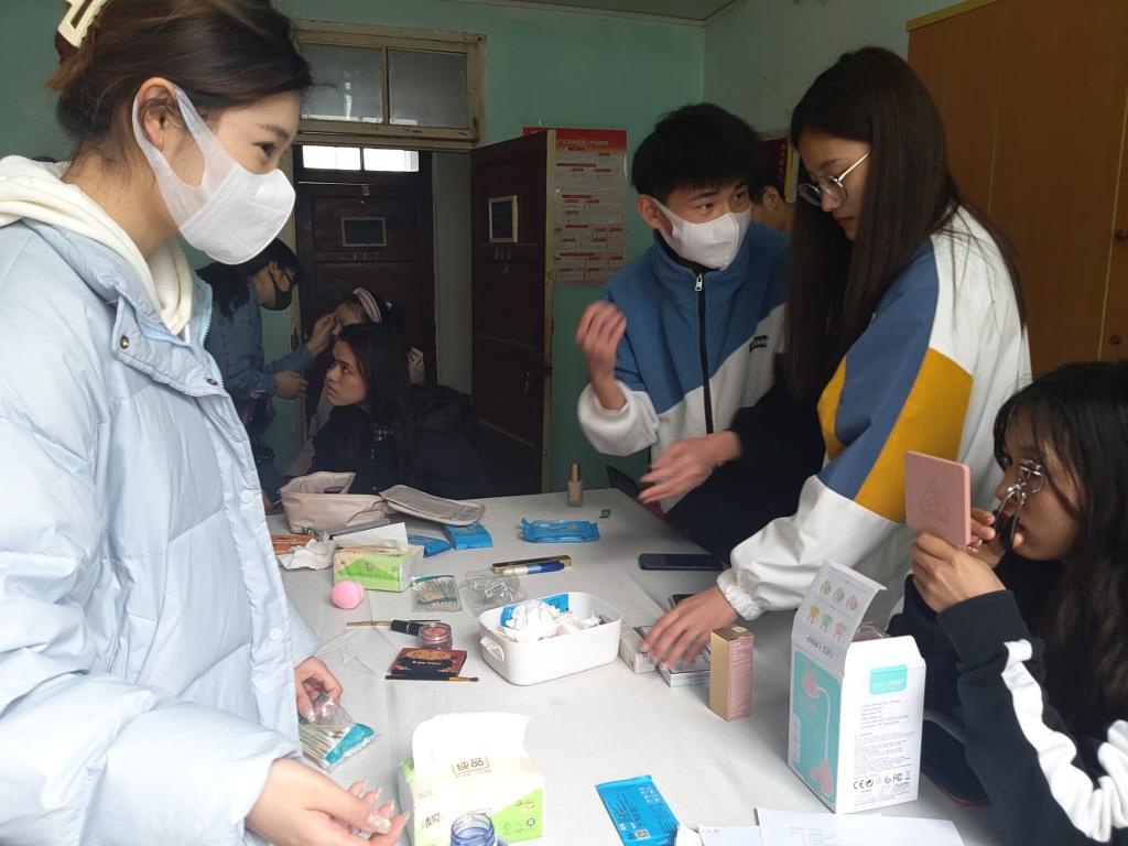 时间滴答滴答地前进,当日下午,文艺部部长陈帅兵在值班室内组织相关工作进行,同学们带着好奇的眼神在门外张望,在员工会人员的引导下,很快化妆师就开始根据他们的需求来进行妆容处理。现场氛围融洽,让大家有机会深入地接触化妆这门艺术。活动一直持续到夜幕降临,当天共为全校同学定制妆容和指导化妆技巧百余人次。