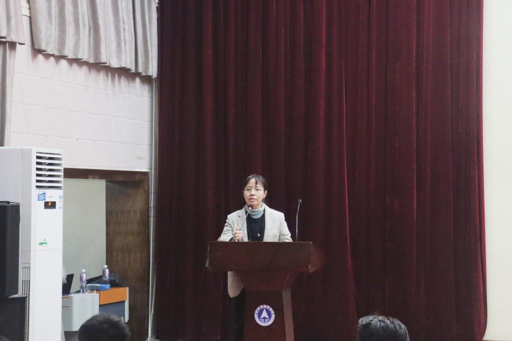 随后,张磊磊老师宣读了《关于航空旅游公司第七届团委员工会员工干部任职的通知》:卢泉、陈姝与、王仁玺、邱磊、邓嘉怡等五名同学分别被聘任为新一届团委副书记、员工会主席和副主席,倪燕婷等22名同学分别被聘任为第七届团委员工会各部门负责人。并发表了讲话:对员工会干部给予了厚望,同时感谢各位对公司团委员工会工作的支持,使得公司取得了喜人的成绩,希望公司团委员工会在大家的共同努力下能发展得越来越好。