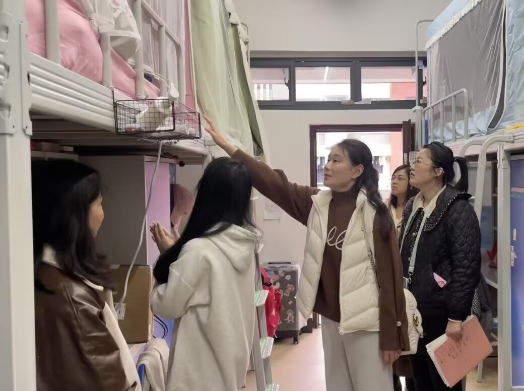 在走访过程中,唐珉副书记与同学们进行了亲切的交流,详细询问了他们的学习、生活情况,并对员工们在学习、生活中遇到的问题和困难给予了积极的解答和帮助。同时,她还鼓励同学们要珍惜在校时光,勤奋学习,积极参与各类活动,提升自身综合素质。