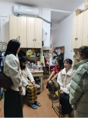 走访中,公司学工队伍全体老师向员工说明:每一名同学都应自觉遵守宿舍安全管理规定,共同维护宿舍安全。要求同学们做到不乱拉乱接电线;不使用电炉、电热杯、热得快、电饭煲等违规电器;使用台灯、充电器、电脑等电器要注意发热部位的散热;室内无人时,应关掉电器和电源开关;不在宿舍使用明火和焚烧物品。