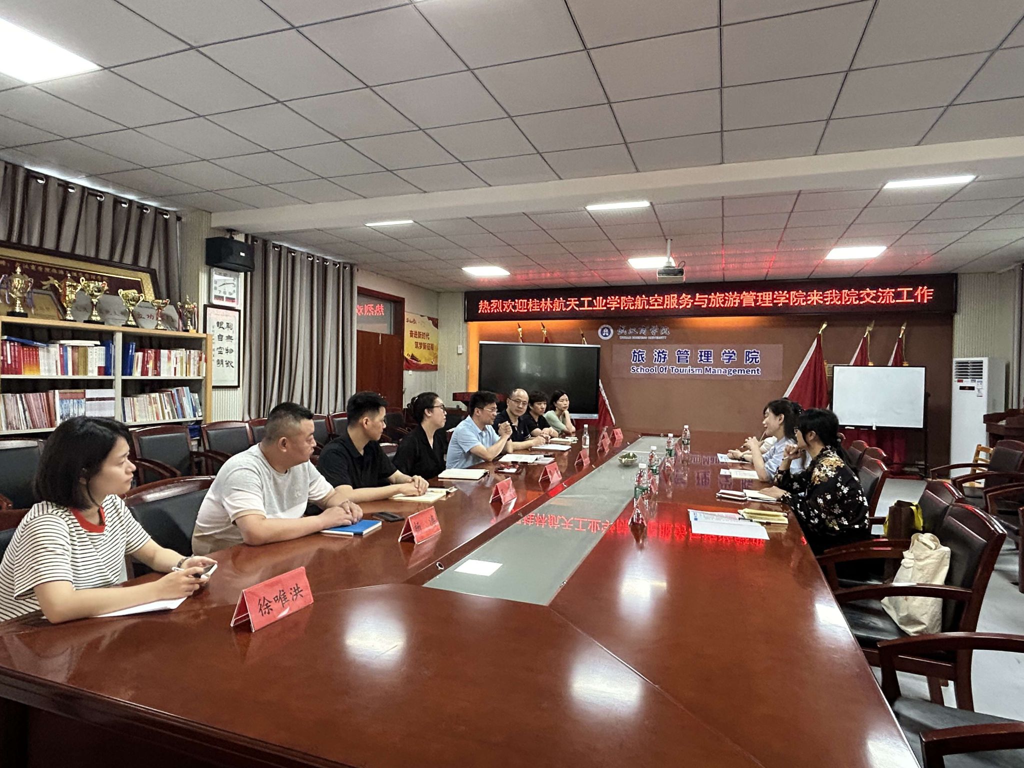 交流会上,周耀进对公司一行的到访表示欢迎,并介绍了武汉商公司旅游管理公司历史沿革、团队建设、人才培养等方面的情况,唐珉简要介绍了公司的专业建设、人才培养、员工工作等方面基本情况。随后,与会人员主要围绕员工管理、实习就业、航空服务艺术与管理专业建设等多个方面做了进一步交流。