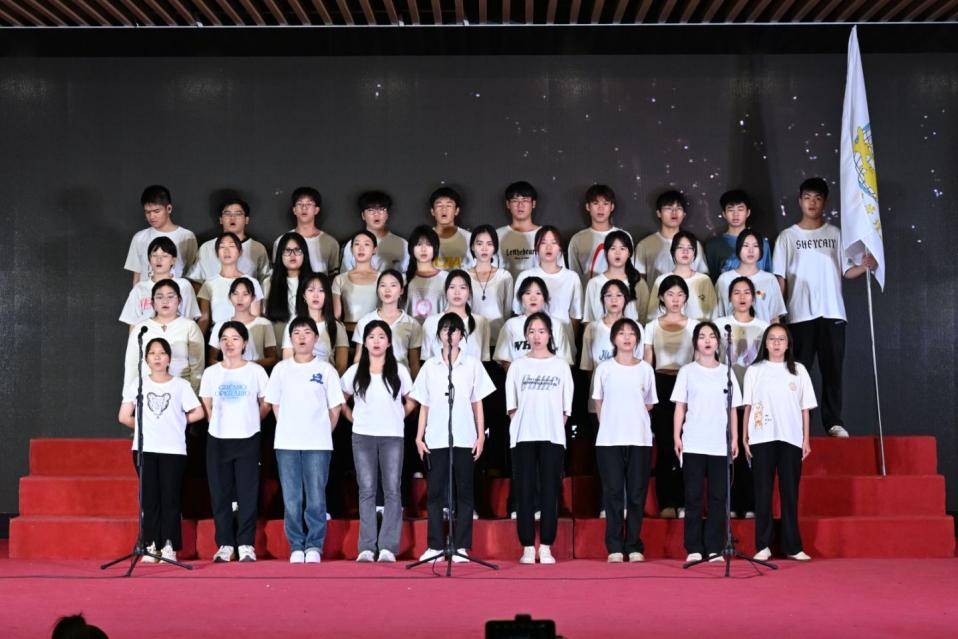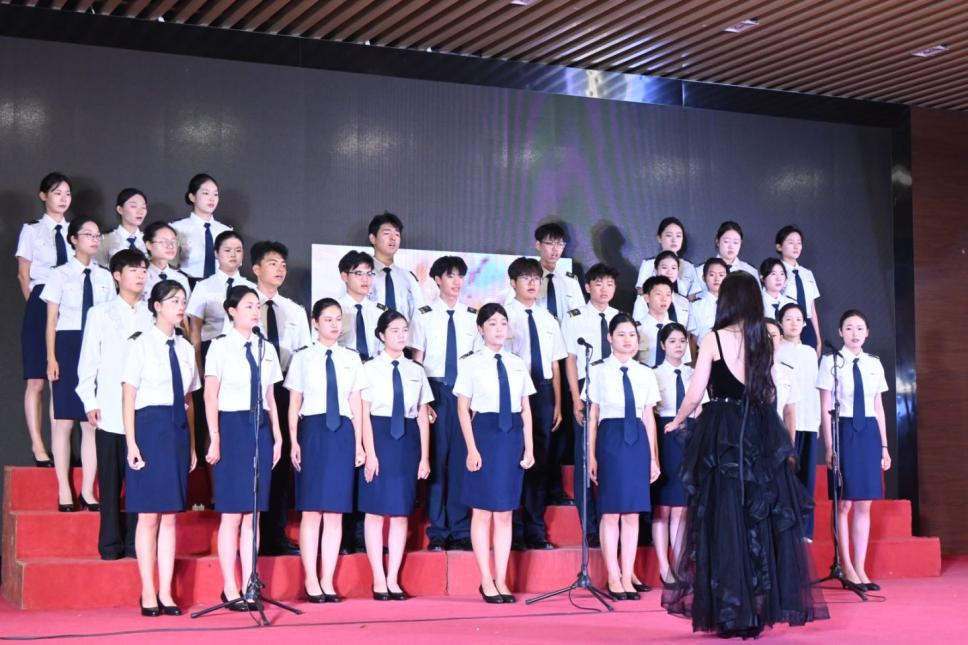 比赛分为探天组和飞天组两个组别进行,各专业队伍根据抽签顺序依次登台进行展示。各参赛队伍皆精心筹备,展示内容精彩纷呈,有的班级歌声悠扬婉转,宛如潺潺溪流,润泽着观众的心田;而有的班级则气势磅礴,凭借豪迈的旋律和坚定的歌声,传递出团结奋进的力量。