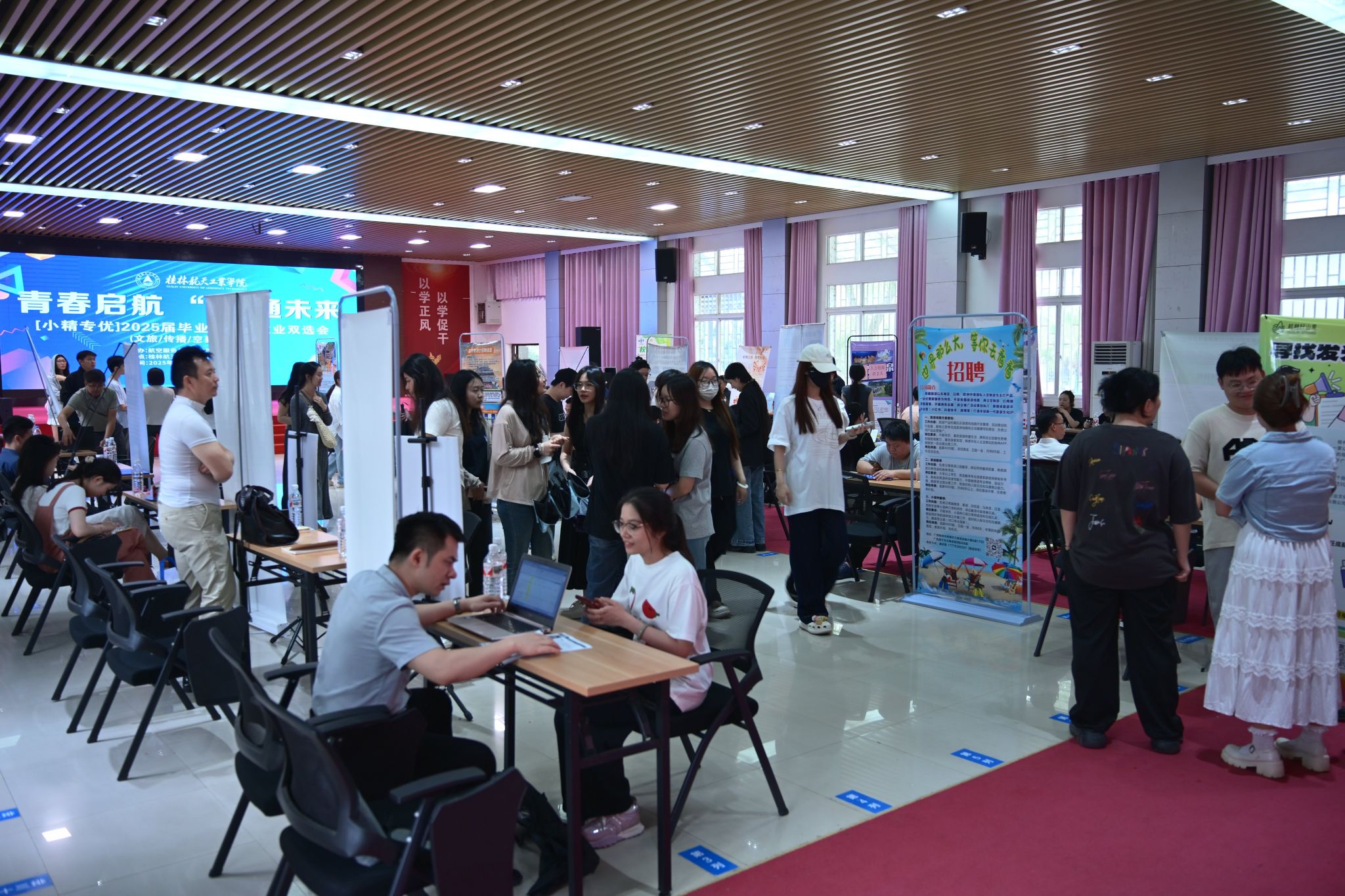 5月15日上午,新葡的京集团350vip8888成功举办青春启航•“职”通未来2025届毕业生春季就业双选会。此次活动吸引了在文旅、酒店、航空、新媒体等多个领域具有卓越资质的25家企业参与,为毕业生们提供了众多就业岗位和实习机会。公司学工处领导、公司领导、企业代表、毕业班辅导员以及2025届、2026届的毕业生们共同参加此次活动。