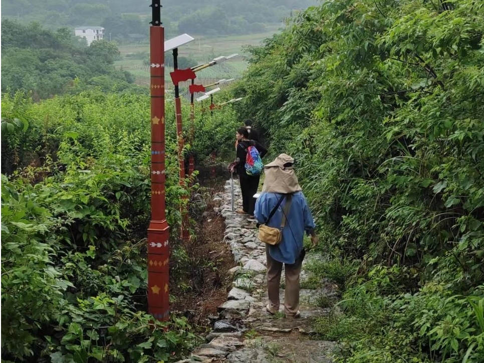 随后,团队登上了新圩阻击战战地遗址——炮楼山,重走红军路。炮楼山一带为新圩阻击战的最后一道防线,也是红六师第十八团接替红五师防守之地,红军战士们固守阵地不怕牺牲,浴血奋战与敌人抗争到底,为主力部队渡江赢得了宝贵的时间。