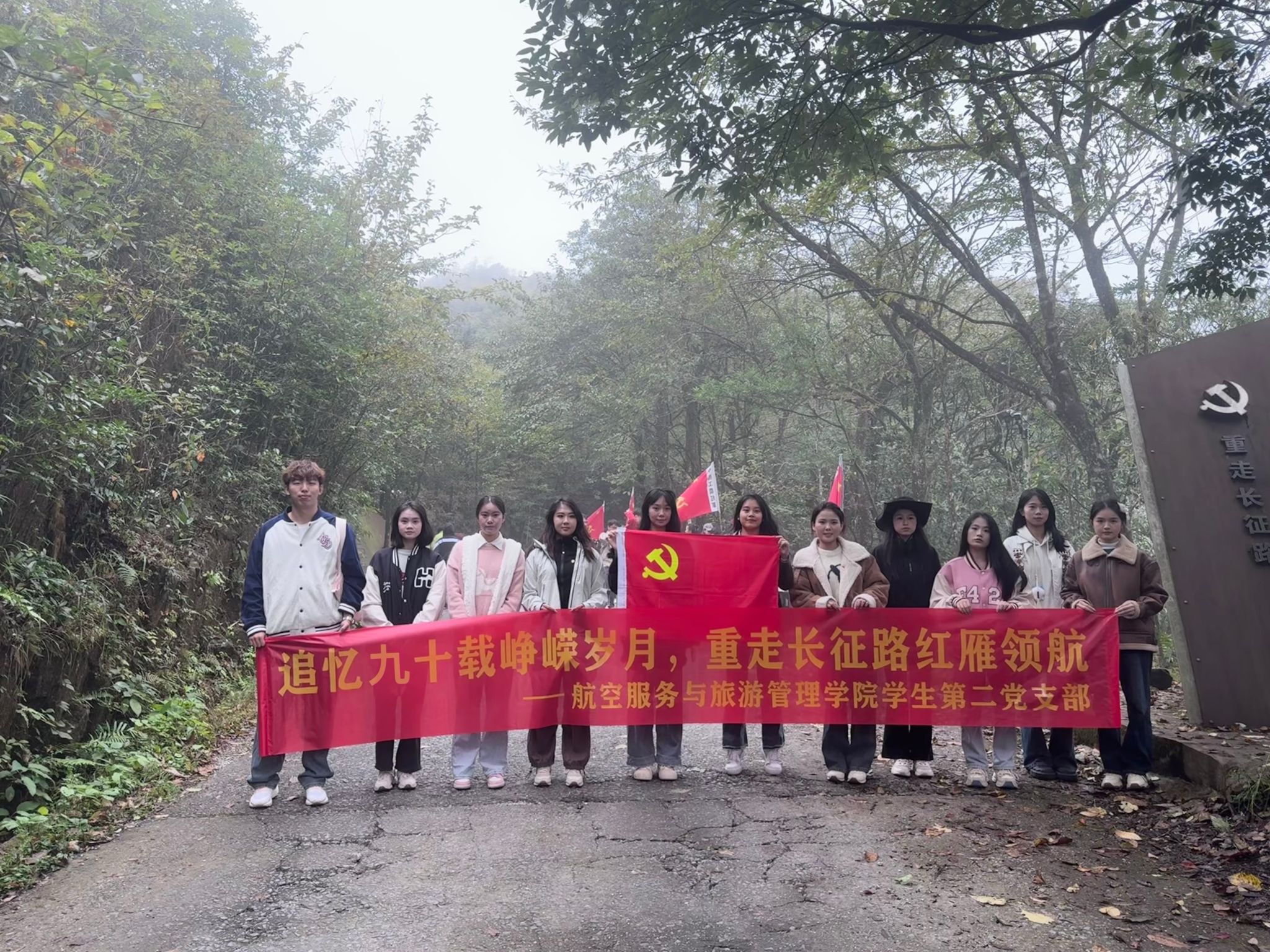 为深入推进党史学习教育常态化长效化,继承和弘扬红色基因,近日,新葡的京集团350vip8888第二党支部组织党员、入党积极分子,前往猫儿山红军故道和红军广场,开展了一场以“追忆九十载峥嵘岁月,重走长征路红雁领航”为主题的红色教育活动。