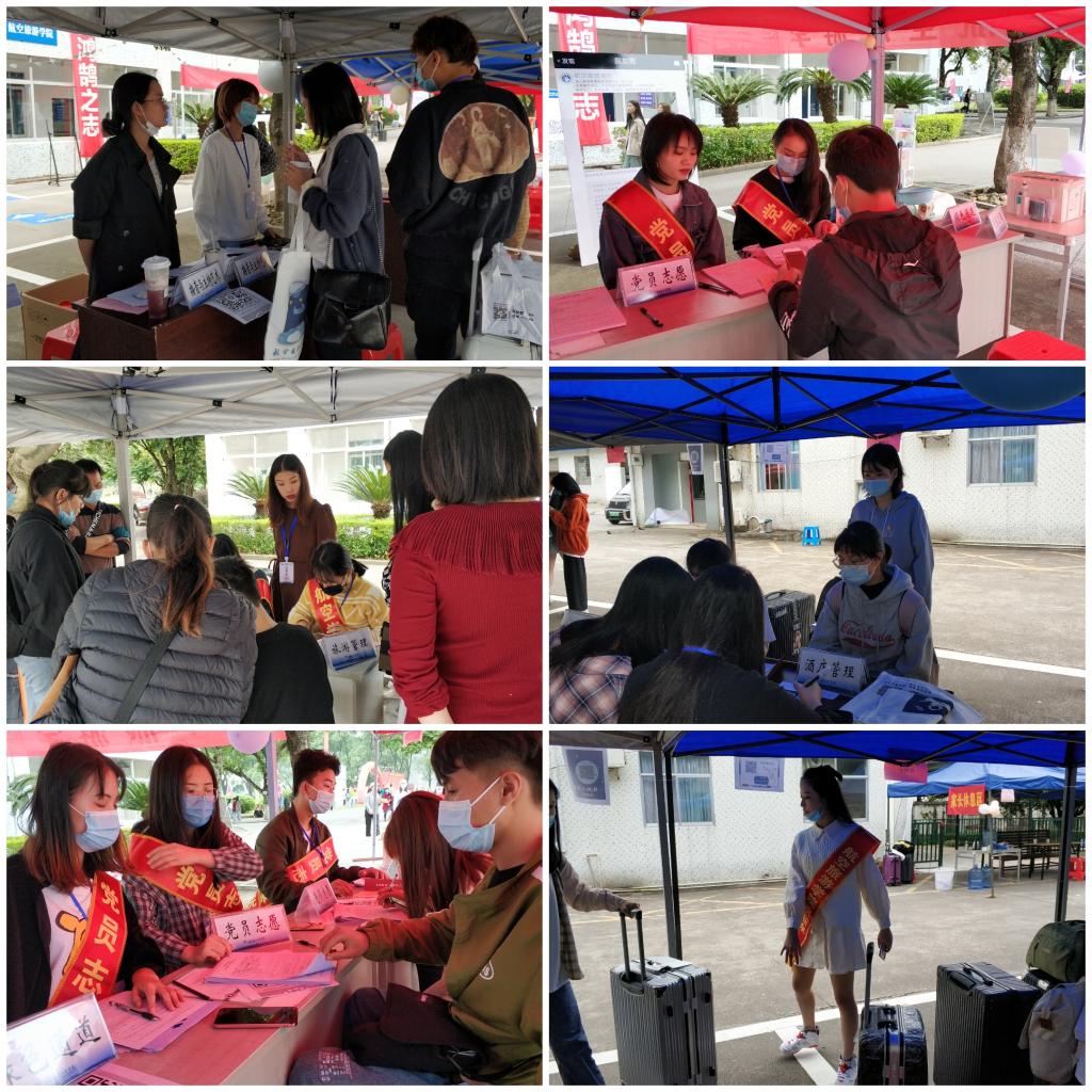丹桂飘香,秋风送爽,喜迎新生。10月10日,伴随着紧张细致的迎新准备工作,航空旅游公司迎来了2020级的莘莘学子,迎新工作正常有序开展着。为了更好地为新生服务,发挥员工党员的先锋模范带头作用,向萌新们提供更好的服务,同时建立健全党员先进性、模范性长效机制,发挥党员的先锋模范作用,引导党员增强责任意识、服务意识、担当意识,扎实做好各项服务工作,充分发扬党员的吃苦耐劳精神,支部组织40余员工党员参与了迎新全程工作。在迎新工作中,醒目的党员先锋岗成为了迎新现场一道亮丽的风景线,他们用热情的笑脸、温暖的问候、周到的服务、贴心的关怀为来自五湖四海的2020级本科新萌及家长服务。