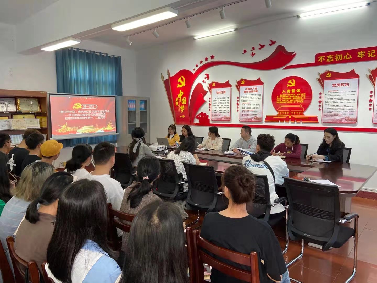 为庆祝中国共产党建党100周年,深入学习贯彻习近平总书记在党史学习教育动员大会上的重要讲话精神,扎实深入开展党史学习教育,3月31日中午,航空旅游公司员工第一、二党支部在公司306会议室召开党史专题学习会,全体党员集中学习。