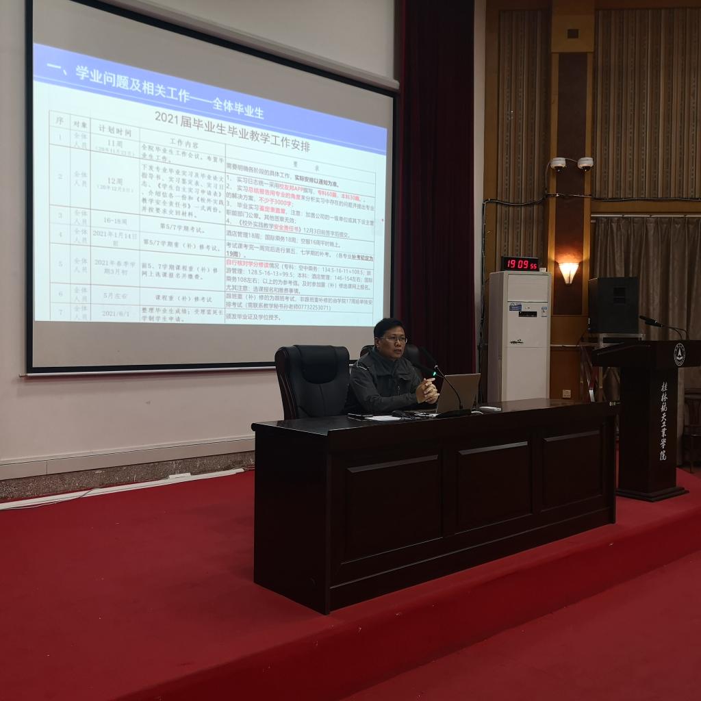 为切实做好公司2021届毕业生学业及就业相关工作,11月23日晚上,航空旅游公司在2108教室召开了2021届毕业生工作布置会议,对2021届毕业生的就业工作进行了详细布置。公司副经理林朝阳、党总支副书记李雨思、毕业班辅导员以及全体毕业生参加了会议。