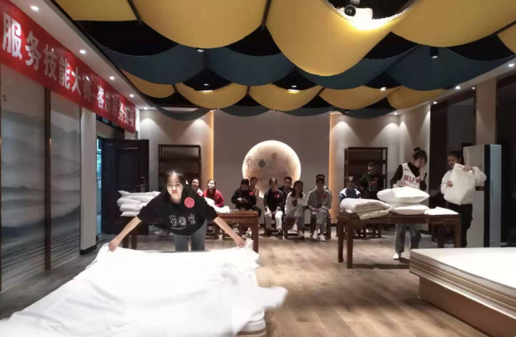 酒店技能大赛期间,今年作为启动年,指导老师手把手的教员工如何适应国赛标准,打造国赛质量。