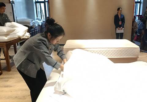 在“创意开夜床”环节,选手们更是充分展示了自己的聪明才智。“甜蜜婚礼”、“温馨旅途”、“欢乐圣诞”等各种主题精彩纷呈,选手们用一双巧手将客房的面巾、浴巾等折成交项的天鹅、摆尾的金鱼、绽放的鲜花……活灵活现,栩栩如生。