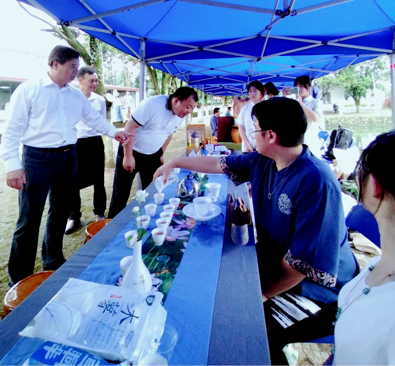 据悉,该活动由广西壮族自治区茶叶研究所主办,广西多家茶叶生产企业参加。公司王化、李鸣镝、李剑老师带领员工现场设置茶席,参加“无我茶会”专项活动,活动由员工主泡,指导老师现场指导,公司师生用专业、热情的服务招待前来品茶的客人。员工娴熟的泡茶技艺得到自治区农业农村厅二级巡视员徐世宏和茶科所所长刘助生等领导的充分肯定。