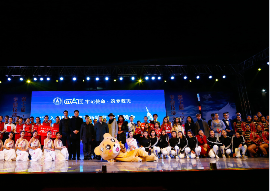 2017年12月18日晚,由桂林航天工业公司党委宣传部、校团委主办,公司承办的第三届航天日“迈入新时代 谱写新篇章”文艺晚会暨第七届空乘之星专业技能大赛在北校区青春广场隆重举行。公司副董事长杨杰,以及来自桂林市多个职能部门领导、航空公司领导、区内外兄弟院校、合作单位代表等嘉宾、评委和师生们一同观看了本次晚会。