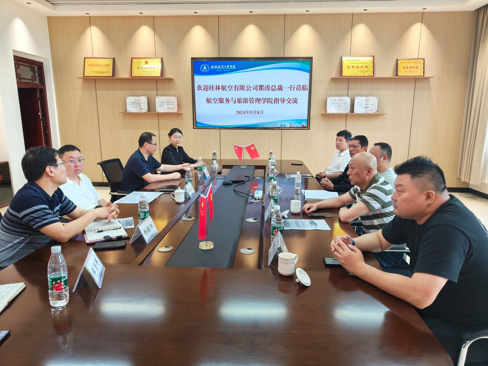5月9日下午,桂林航空有限公司瞿涛总裁一行5人到公司调研交流。双方在探天楼C208会议室召开座谈会,就专业共建、校企合作事宜进行了深入交流。公司董事长助理樊勇,公司班子成员以及航空宇航公司负责人参加座谈会。